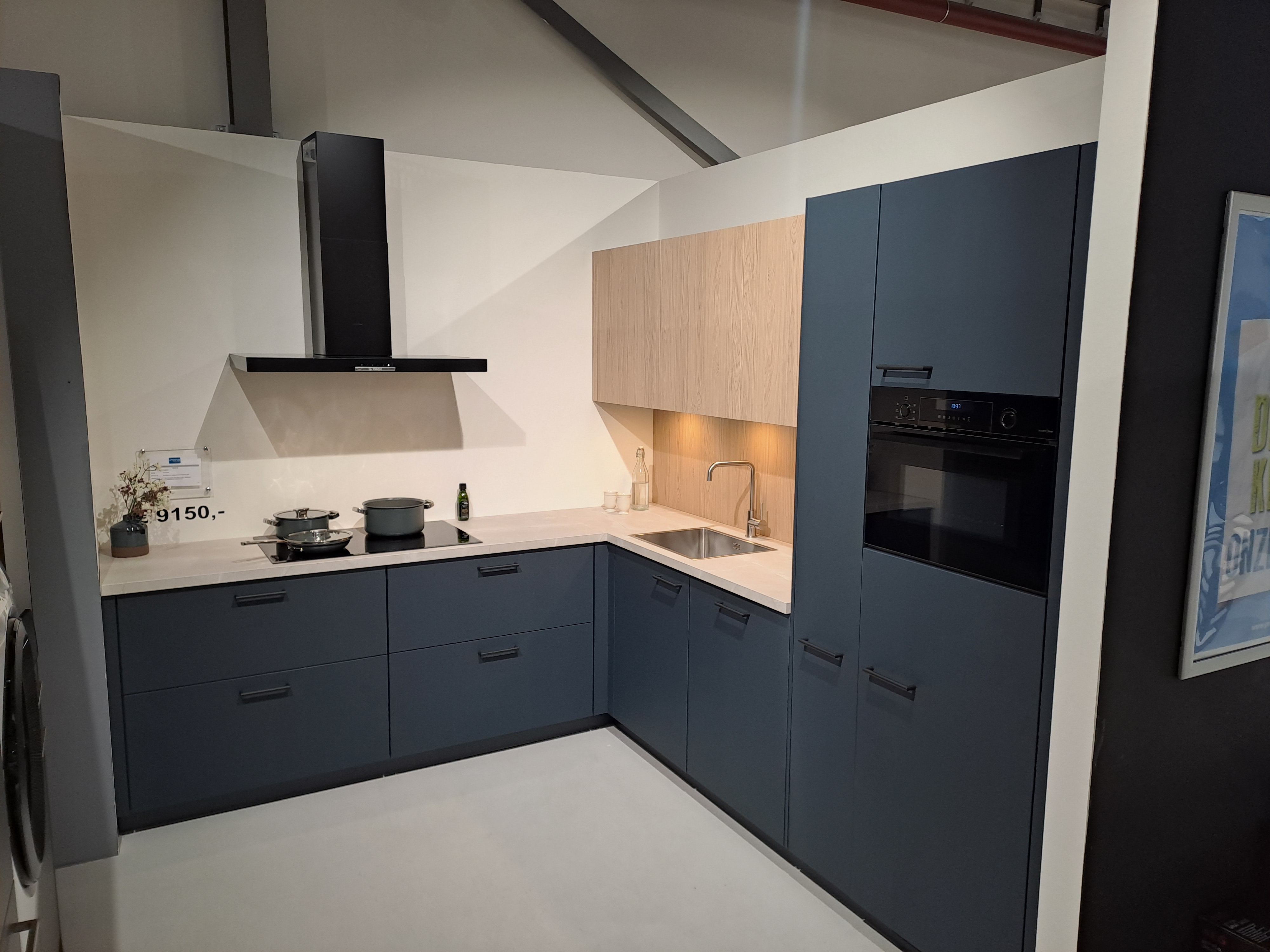 Hoekkeuken | Easytouch fjordblauw ultramat - decor eiken como