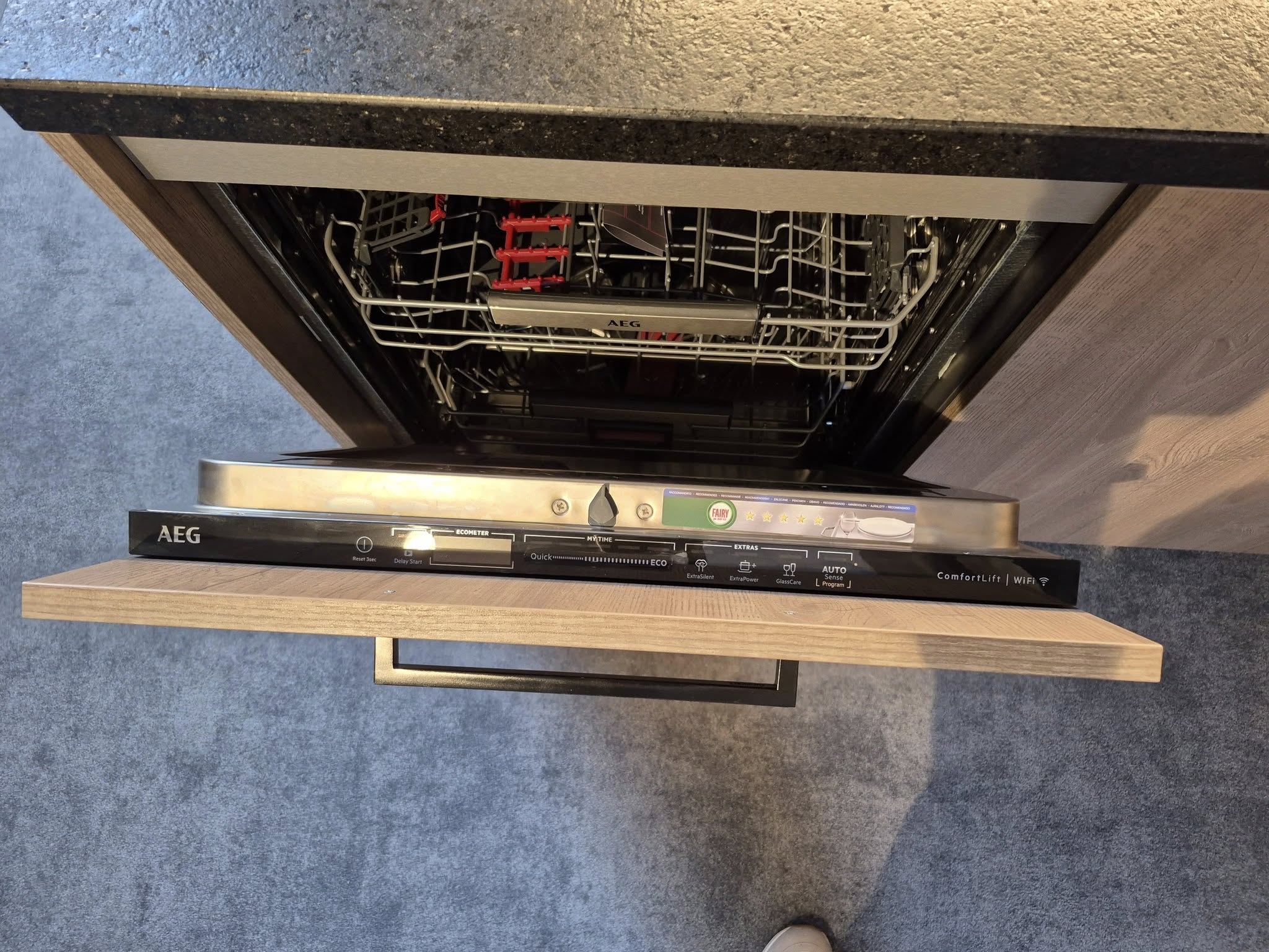 - zeer luxe vaatwasser van AEG met Comfot lift systeem en digitale bediening met telefoon