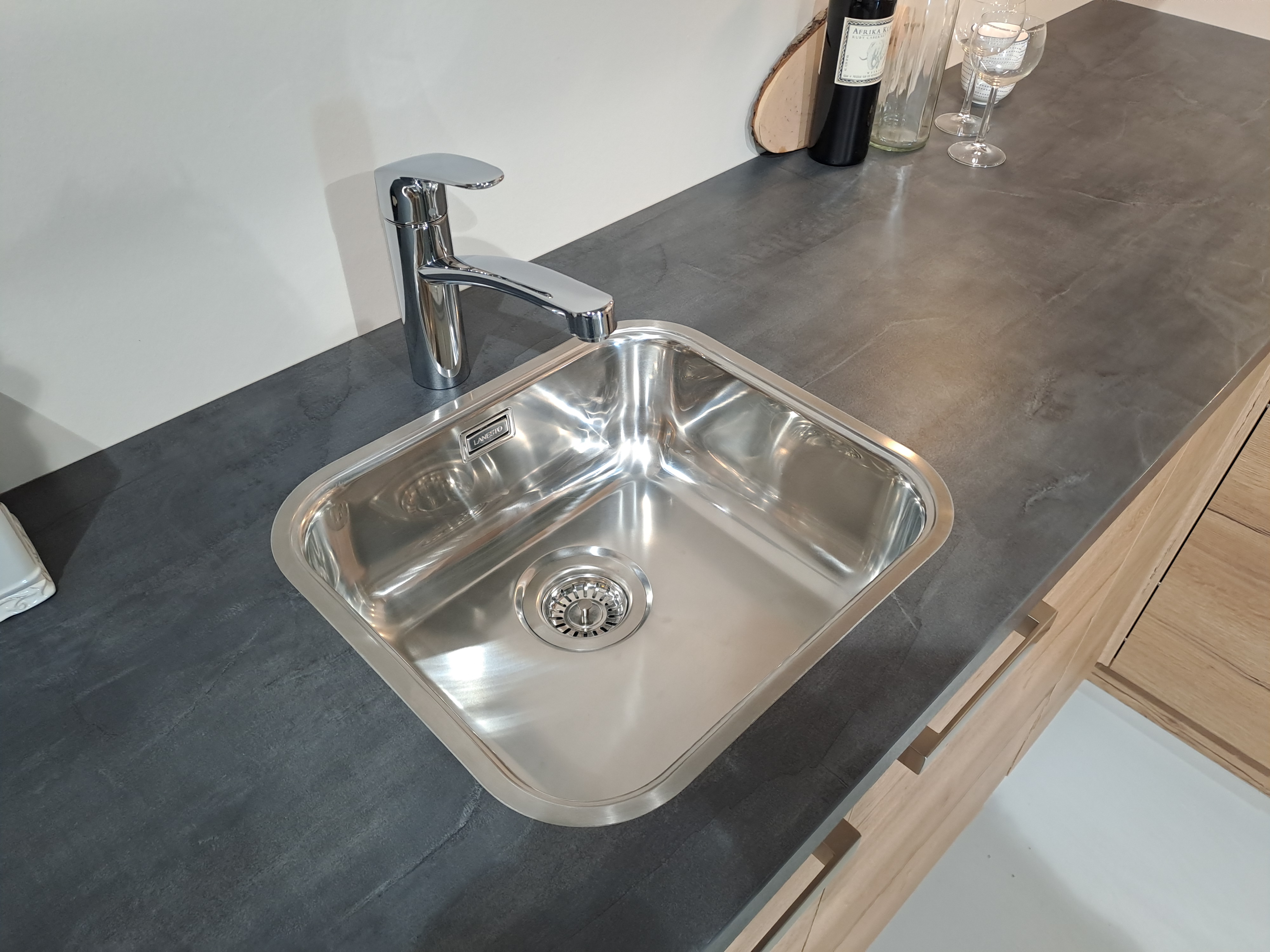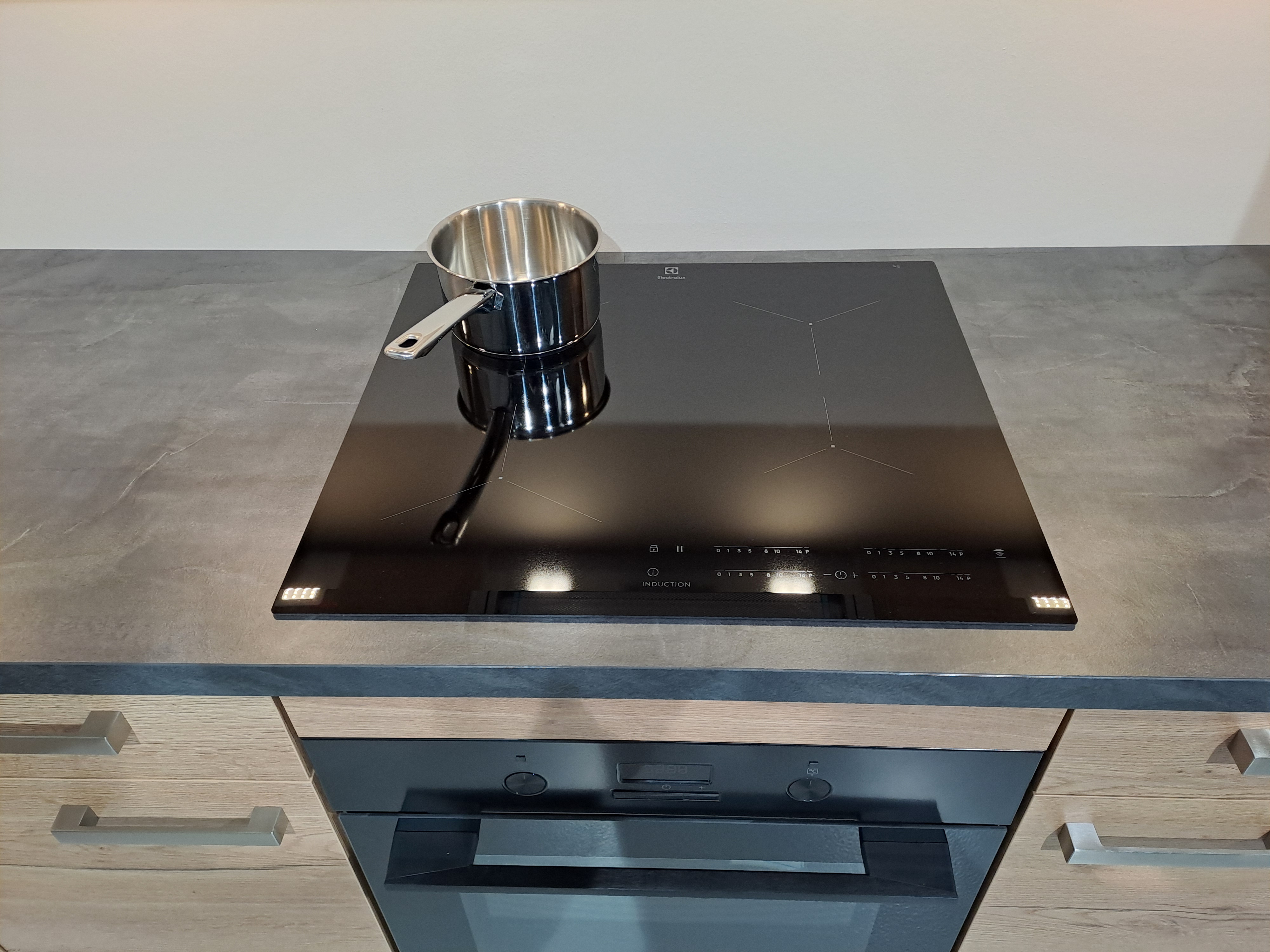 De keuken heeft een afmeting van 2717 x 3065 mm en is uitgevoerd in het houtkleurige 'Eiken Sierra'. De keuken wordt verkocht inclusief een Electrolux inductiekookplaat, koelkast en oven en heeft een Elica afzuigkap. Het toevoegen van een vaatwasser behoort tot de mogelijkheden; de keuken is erop voorbereid. Daarnaast heeft de keuken een kunststof werkblad met vlakinbouw spoelbar. De kraan en verlichting horen ook bij het geheel.